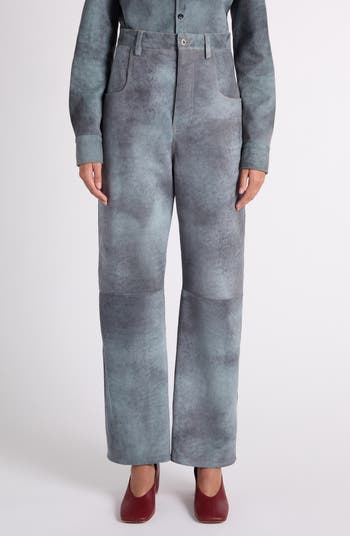These runway-featured pants from Louise Trotter's debut collection are tailored in a paneled, wide-leg silhouette from suede with a cloudy finish reminiscent of stormy skies.