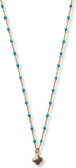 Turquoise-colored stations brings a cool hue to this sterling silver necklace plated with warm 18-karat gold.
