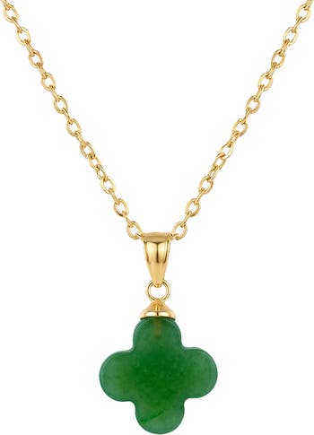 Green nephrite clover pendant on an adjustable gold plated chain. A lucky jade necklace that adds a rich pop of color to everyday looks.