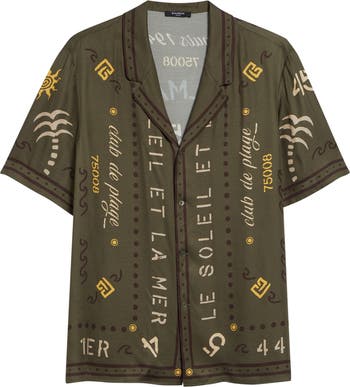 A bold print identifies you as a denizen of Balmain's Club 45—a nod to the maison's founding year—on this fluid button-up topped with a notched collar for added retro flair.