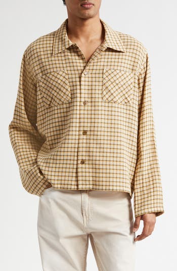 The Swedish label’s surfboard-shaped logo curves across the back of this boxy, hip-length overshirt cut with wide sleeves from a golden-hued cotton-blend check.