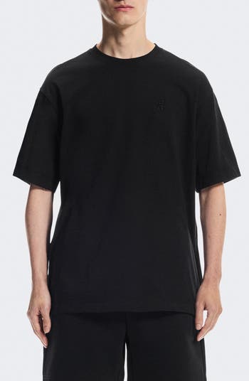 A roomy fit handles all the moves you'll make in your toughest workouts or laziest weekends in this logo-popped T-shirt cut from soft, stretchy fabric.