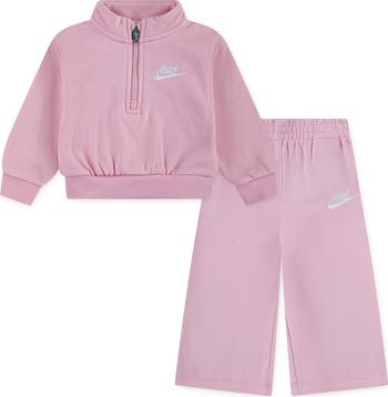 Cotton-blend fleece brings cozy comfort to a sporty half-zip pullover and matching sweatpants that are perfect for keeping your little one warm and huggable.