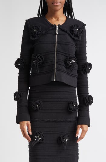 Club Floral Appliqué Rib Cardigan