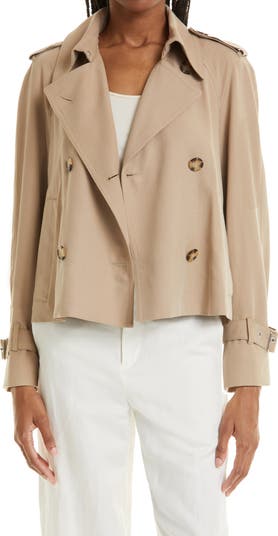 All the iconic trench coat stylings come through in an abbreviated option that updates the classic.