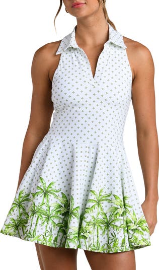 Dominate the court in this printed tennis dress with a built-in shelf bra and racerback for enhanced movement.