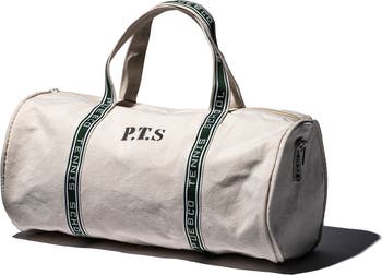 The classic and timeless look of a duffle with vintage, sporty details. Throw your gym clothes in and go or pack for a weekend get away. *If the stencil part gets wet, the ink will bleed and transfer color to the surroundings. Also, please be aware that the color may transfer onto other items such as clothing.