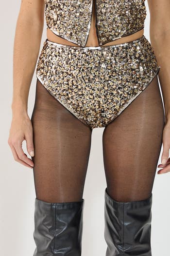 Make an unforgettable entrance in these Cluster Hand Embellished Booty Shorts from NastyGal's Icons collection. The all-over sequin embellishment catches the light with every movement, ensuring all eyes are on you. Style with the matching top for a coordinated look that commands attention, or mix with contrasting pieces for versatile styling options.