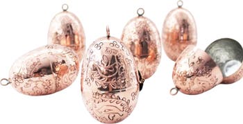 A tribute to legacy and family, our Vintage Copper Bird & Floral Egg Ornaments were the first piece Beth Ann ever created for Coppermill Kitchen. Etched by hand with delicate floral and bird motifs, each egg opens and closes to hold a tiny keepsake or treat. Inspired by a family tradition shared with her grandmother, these copper eggs are a nostalgic nod to Easter mornings and year-round storytelling. Made from heavy-gauge copper, they are designed to last a lifetime and beyond. At Coppermill Kitchen, we create vintage-inspired copper heirlooms rooted in family, artistry, and emotion. Style them at each place setting filled with candy, or hang them from budding spring branches in the center of your table with ribbon. Store wrapped in soft cloth and keep dry to preserve the intricate etching and patina.