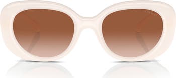 Polished logos at the temples enhance the glossy allure of sleek round sunglasses fitted with full-coverage gradient lenses.