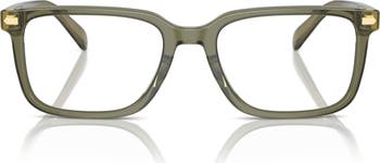 Interlocking initials subtly define the temples of these square glasses featuring a contoured browline and lightweight acetate frames.