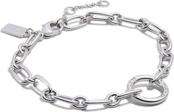 A debossed logo emblem is the centerpiece of this minimalist chain-link bracelet.