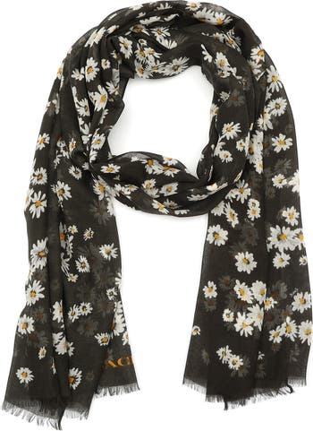 Bright daisy bouquets bloom across this long scarf crafted from frothy modal and silk and finished with delicate eyelash fringe at the ends.