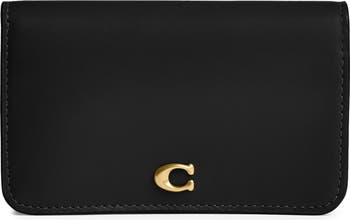 Polished hardware and rich leather distinguish a compact card case perfect for storing your cards, cash and coins.