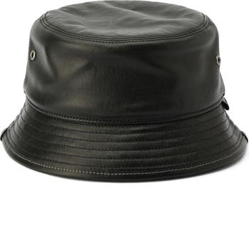 A smooth leather silhouette emboldens this on-trend bucket hat.
