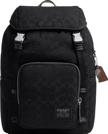Signature logo-jacquard nylon gives an elevated sporty look and durable feel to this drawstring backpack perfect for a day of errands and long-term travel alike. A playful whistle charmed is paired with a leather tag for a playful touch of personality.