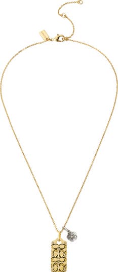Swarovski crystals twinkle from a logo-quilted dog tag and tea-rose charm that bring rich brand DNA to this chic everyday necklace.