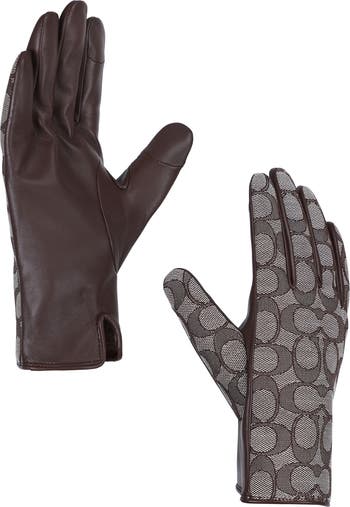 Cozy merino wool warms these dapper leather gloves enhanced with signature jacquard and touchscreen-compatible fingers.