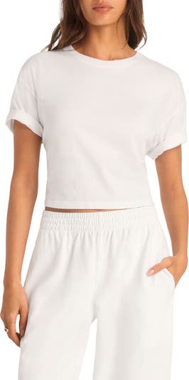 Coast through the weekend in the incredible comfort of this cropped T-shirt is made with recycled cotton fibers and cut in a relaxed fit for easy, flowy movement.