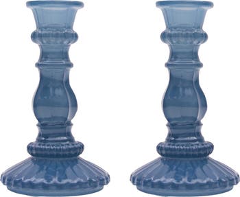 Gallerie II Coastal Blues Elegant Glass Candle Holders Set of 2, Main, color, Blue