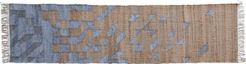 - This unique runner rug features masterfully woven jute and cotton kilim in a cascading geometric design, finished with decorative fringe