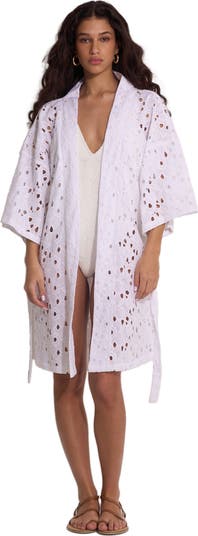 Let the lace do the talking in the Coastal Lace Robe Cover-Up. Featuring a breezy floral lace design, short wide sleeves, and a removable tie belt, it’s the ultimate beachy layer.