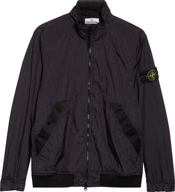 Engineered from lightweight nylon in an ultratight weave, this stand-collar jacket uses an inner resin coating to block wind and shrug off light rain. Garment dyeing penetrates unevenly to draw out a crinkled surface with a marbled tone, while a special anti-drop agent helps water bead and roll.