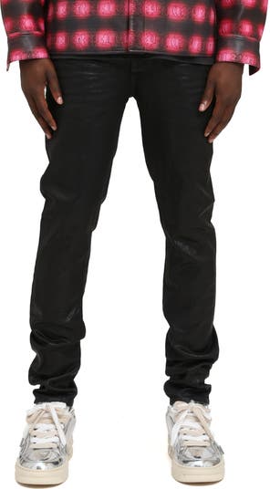 Coated stretch-cotton denim brings a leather-like lustre to these skinny-fit jeans cut in a low-rise silhouette.
