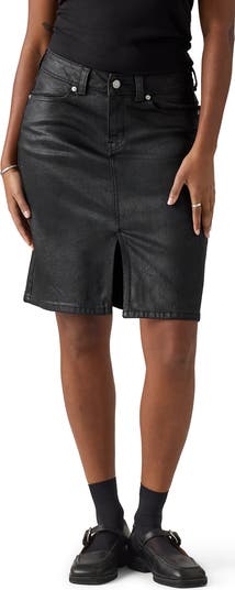 The Americana style stalwart culls the '90s archives, unearthing this low-slung midi skirt cut from coated stretch denim with a subtle sheen.