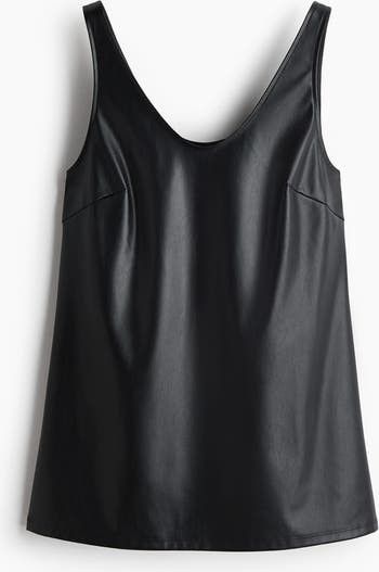 Long vest top in coated fabric with a scoop neckline at the front and back.