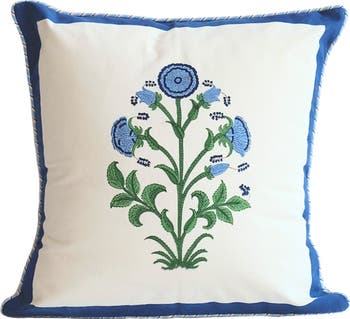 As an avid gardener, botanical illustrations are always so pleasing to my eye. This pillow features a botanical study. Expertly block-printed by an eighth generation family of artisans in Jaipur, the artisans are stewards of a craft that has been passed down to them generation after generation. From the master block makers who carve the blocks in a village to the hands that print the cloth, there are many hands that go into making each piece. By selecting this handmade piece, you contribute to reviving craft and supporting artisan communities. Thank you for supporting our artisans. Material: 100% Cotton Dimensions: 18" x 18" inches