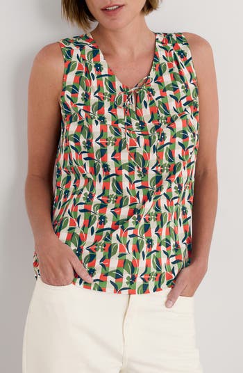 Cobbs Well Floral Sleeveless Organic Cotton Split Neck Top