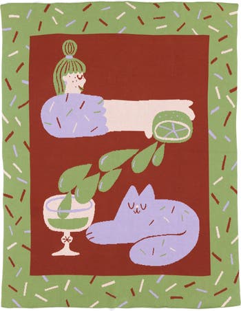 Judit Zengovari illustrates a citrus cocktail moment with a sleek cat looking on. A stylish, story-rich design in breathable cotton knits. Machine wash on cold and tumble dry on low for easy care.