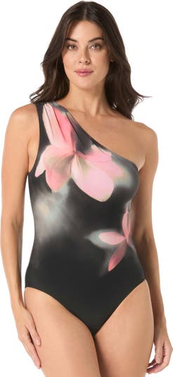 A flattering, floral print, tummy control one piece swimsuit. Dark, feminine, florals adds sophistication to your sun style. Patented Shapemaker® lining smooths your curves with comfortable compression. Add the removable strap for extra support.