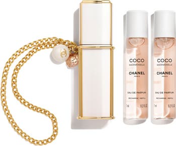 What it is: The COCO MADEMOISELLE Eau de Parfum Purse Spray set features an atomizer that has been designed to resemble a piece of jewelry, with a golden chain that can be worn around the wrist. This format is ideal for enhancing the fresh, ambery notes of the fragrance. Limited edition.