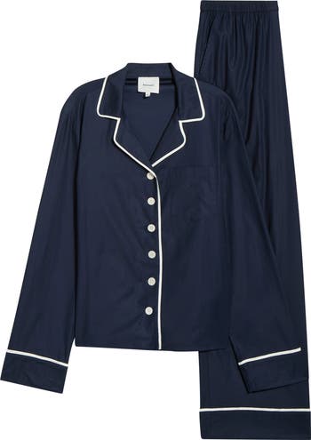 Slumber soundly or simply lounge in these supremely soft pajamas traced with luxe piping and made from fresh and breathable organic cotton kissed with stretch.
