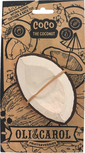 This handcrafted teether is made from natural Hevea-tree rubber with hand-painted details and no holes (so no mold can grow inside.)