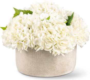 The Aurelia RealTouch Hydrangea Arrangement highlights the timeless beauty of white hydrangeas in full bloom. Set in a sleek cement planter, its lifelike petals bring natural elegance to your tablescape and versatile charm to any space in your home.