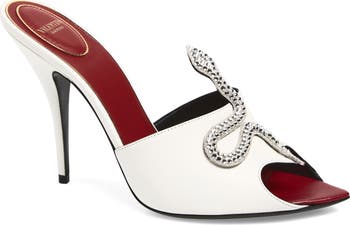 A crystal-covered appliqué gracefully snakes across the strap of this smooth Italian-leather sandal with a heart-shaped peep toe. VLOGO hardware based on an archival '70s emblem glints from the heel counter.