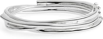 A captivating coiled design inspired by corded telephones reflects light from every angle distinguishes this elegant hinged bangle.