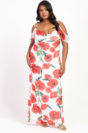 Embrace elegance with our Plus Size Midaxi Dress featuring a stunning poppy print, perfect for both casual and formal occasions.