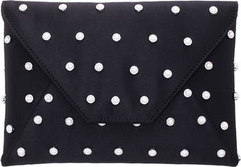 Pearly beads add occasion-ready opulence to the satin exterior of a slender envelope clutch fitted with an optional chain strap for hands-free wear.