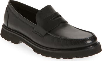A classic penny keeper details a sophisticated loafer grounded by a foam-cushioned footbed and lightweight sole for optimal comfort.