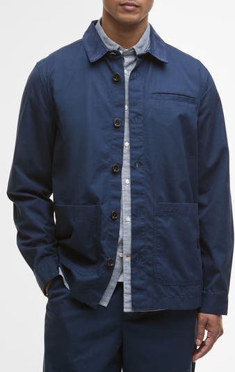 Update your casual-smart ensembles with this dapper poplin overshirt that sports a corduroy collar and a classic welt pocket at the chest.
