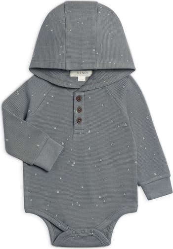The Cole Waffle Hooded Bodysuit is a cozy must-have for winter. With all-over waffle knit detail, crotch snap closures, and front buttons for easy dressing and diaper changing, this thermal bodysuit is great on its own or paired with our matching Nelson Waffle Jogger.