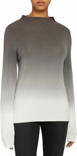 Long Sleeve Mock Neck Degrade Ombre Merino Wool Sweater