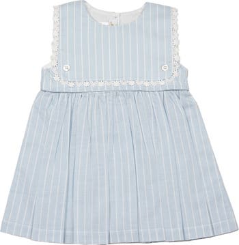 Our Colette Dress is a lace trimmed baby girl outfit with a playfully elegant fit. The lace trim and fabric detail gives this outfit an elegant look. Heirloom quality made with the utmost care.