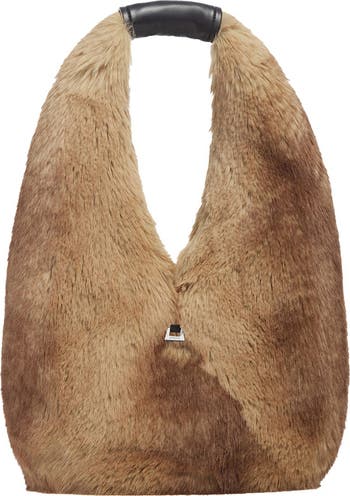 The trending shape in bags meets the state of the art in faux fur fabrication, and voilà, this plush ring bag that can be hand carried or comfortably slung over the shoulder (highly recommended).