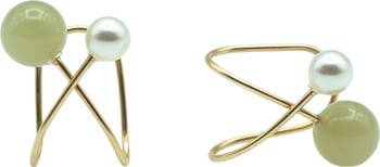 The Colette cuff is the perfect finishing touch to your jewelry du jour. Featuring a faux pearl bead and pale green nephrite gem, it's an Earth and Sky meet-cute. With an adjustable opening, she'll hug your ear just right.
