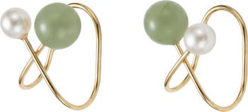 The Colette cuff is the perfect finishing touch to your jewelry du jour. Featuring a faux pearl bead and pale green nephrite gem, it's an Earth and Sky meet-cute. With an adjustable opening, she'll hug your ear just right.